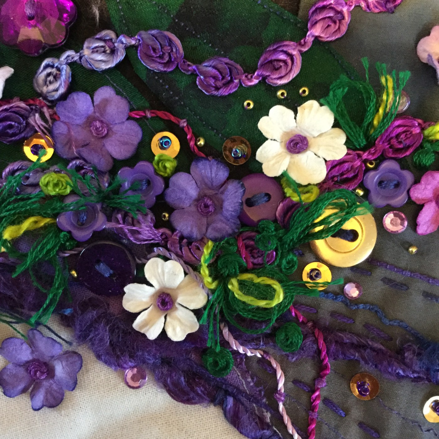 Colour and texture are celebrated again with variety of materials and techniques. Collages of fabrics have been hand-dyed, painted or printed, before being over-sewing with a riot of stitch and other embellishments such as beads, buttons and foils.