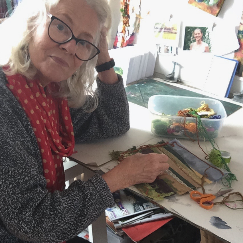 I explore colour and texture using a range of materials and techniques but over recent years I have found myself working almost exclusively with fabric and stitch even though in my head I have always been a painter. Like many women I have developed an emotional attachment to textiles, the materials and processes, which seems almost atavistic, and the versatility of the media, as well as their boundaries, continues to excite and challenge.